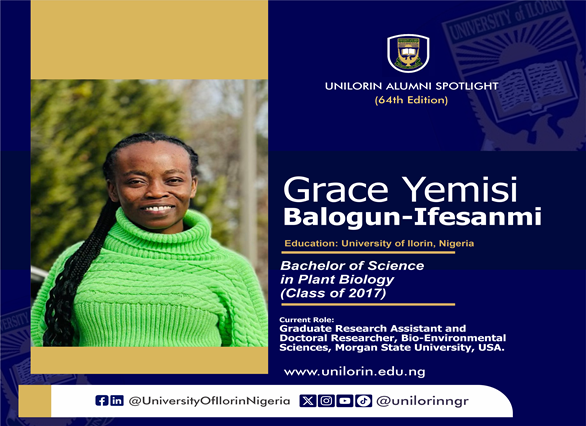 UNILORIN Alumni Spotlight is on Grace Yemisi Balogun-Ifesanmi – Class of 2017!