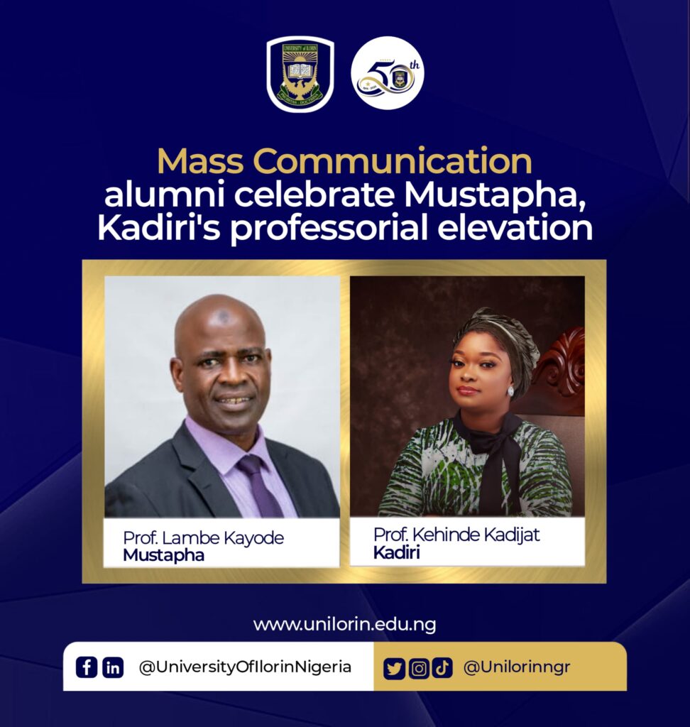 Members of the Mass Communication Alumni Association, University of Ilorin (MCAAUIL), have celebrated the recent elevation of two of their former lecturers, Prof. Lambe Kayode Mustapha and Prof. Kehinde Kadijat Kadiri. to the professorial ranks.
