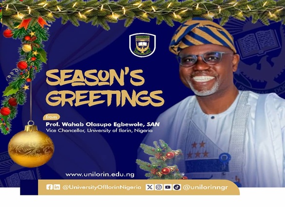 The Vice Chancellor of the University of Ilorin, Prof. Wahab Olasupo Egbewole, SAN, has congratulated members of the institution’s Christian community and their counterparts across the world on the occasion of this year’s Christmas celebrations.