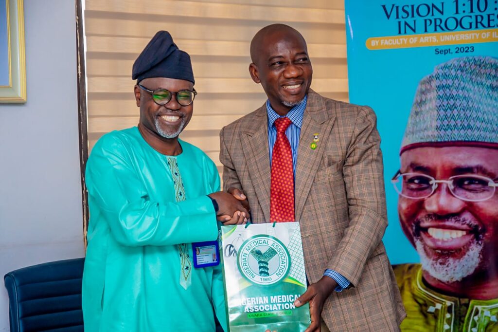 Other members of the NMA team on the visit were the Secretary of Kwara NMA, Dr Ijaiya M. A.; the Provost of the College of Health Sciences, Prof. Sulyman Abiodun Alabi; the Director of University Health Services, Dr Rasheed Odunola; the Chairman MEDSABAMS, Prof. Gabriel Olaiya Omotoso; the Chairman NAMDA, Prof. Muhammed Abdulkadir; and the President of ARD, Dr Shiru Marian.